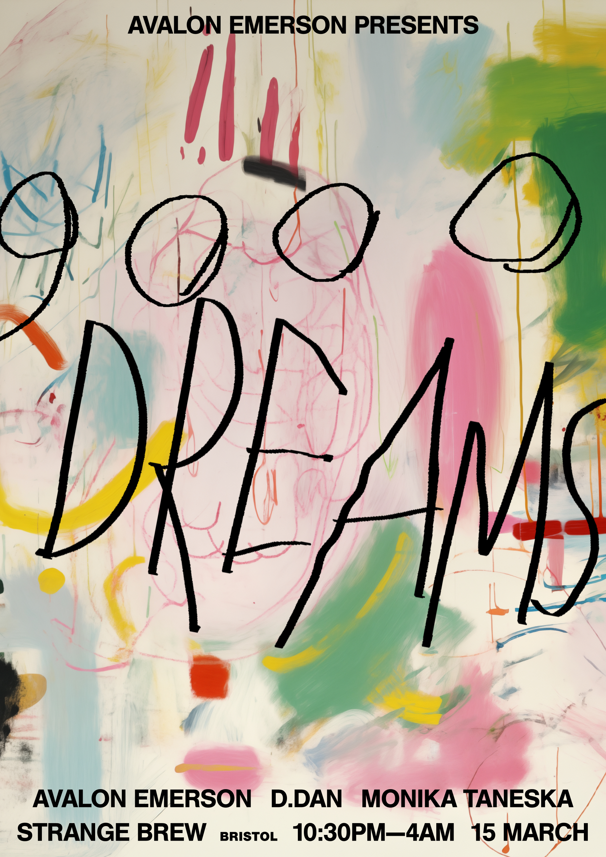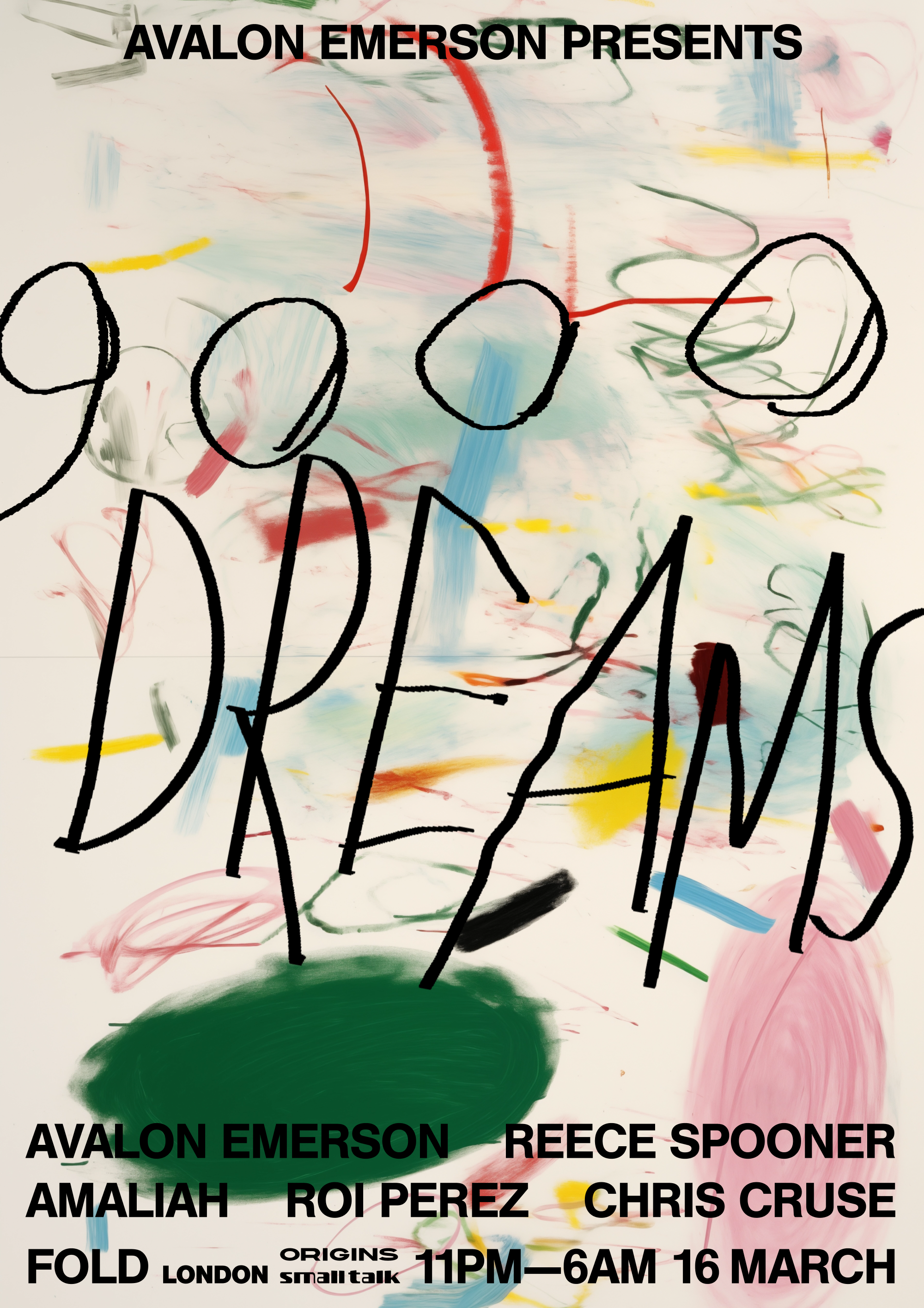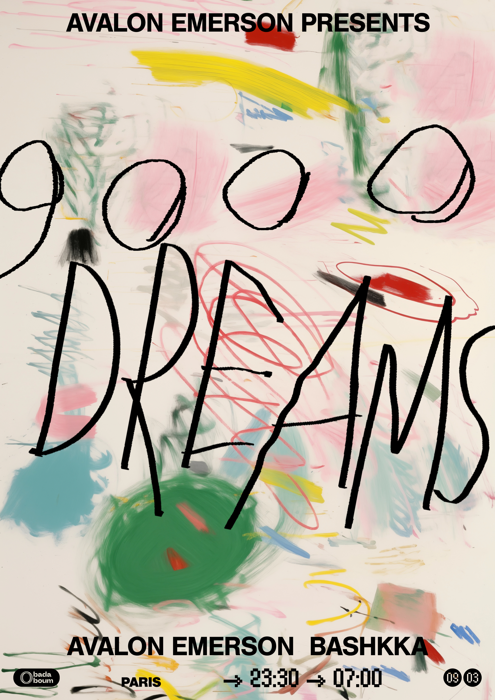 Avalon Emerson reboots her 9000 Dreams party series, and so do I with these messy painterly posters for a series of events around Europe. The art was intended to represent a sort of stochastic dream like state.