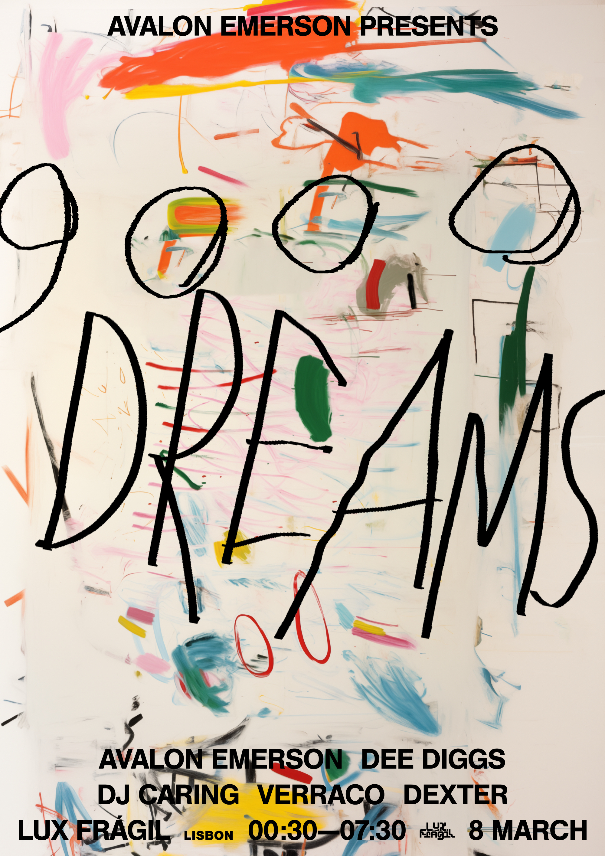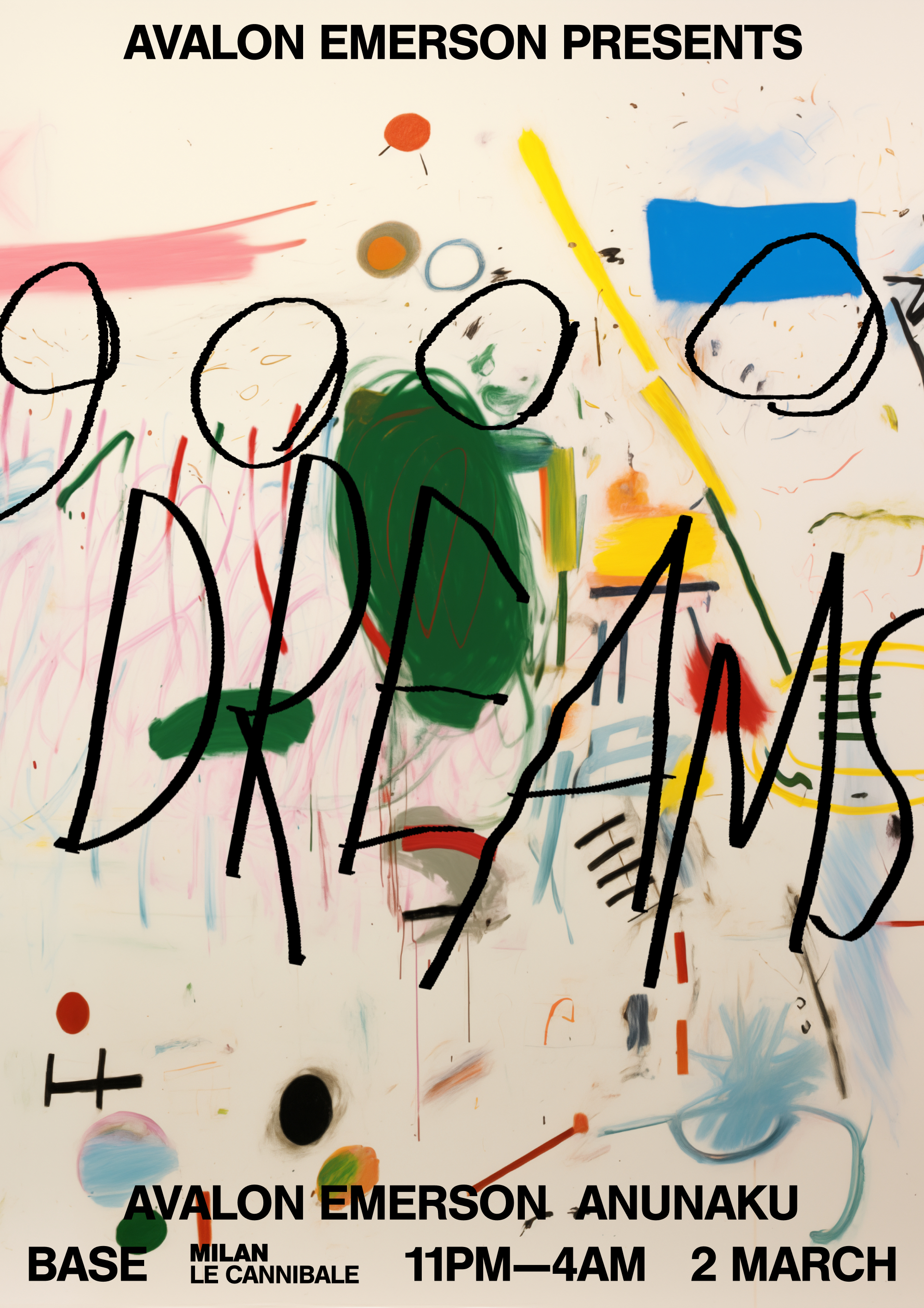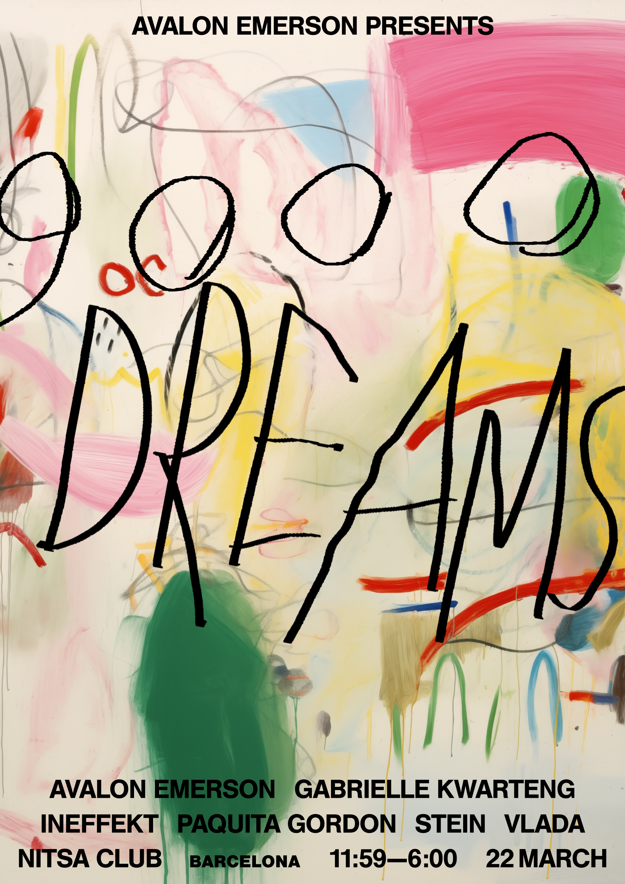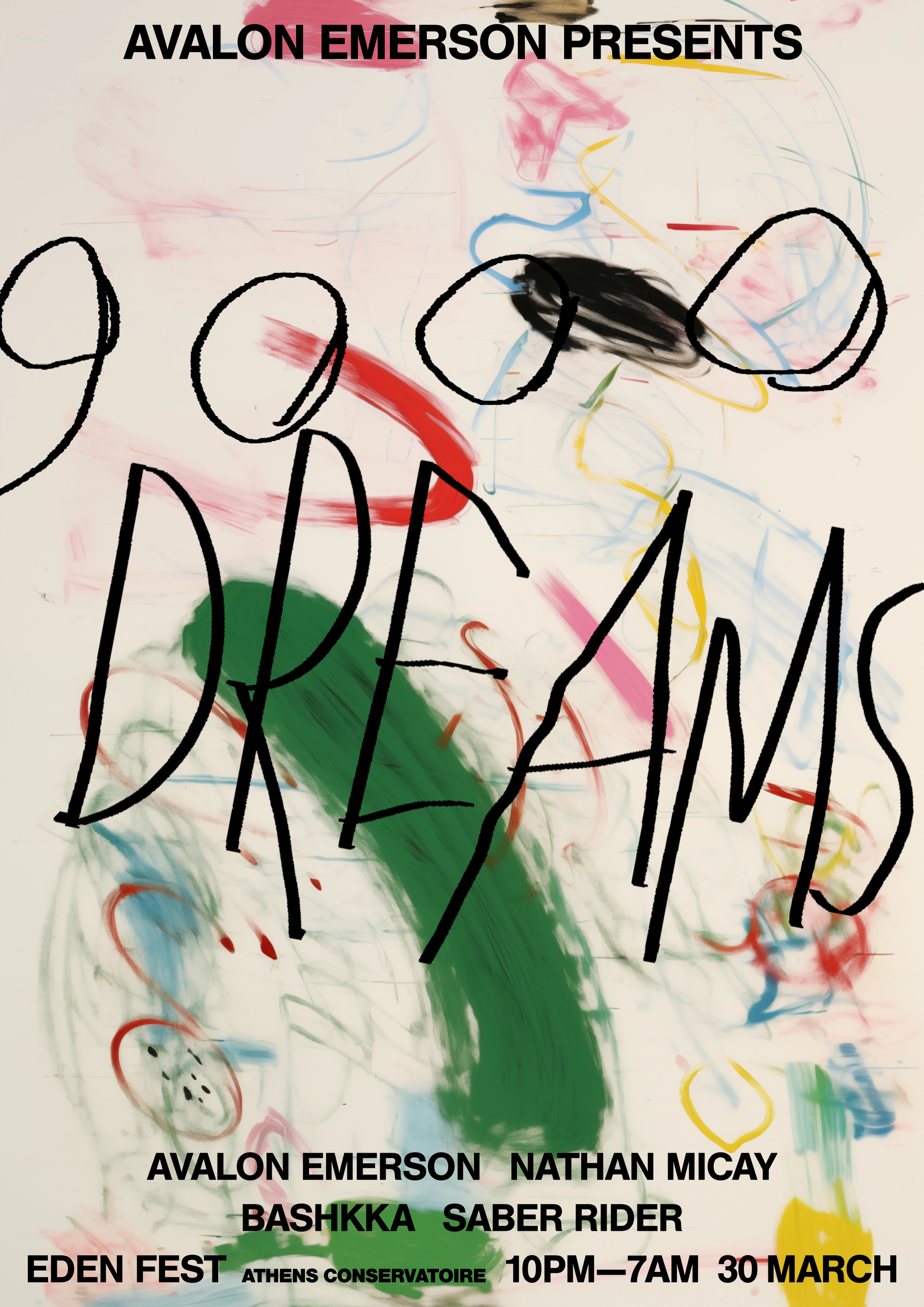 Avalon Emerson reboots her 9000 Dreams party series, and so do I with these messy painterly posters for a series of events around Europe. The art was intended to represent a sort of stochastic dream like state.