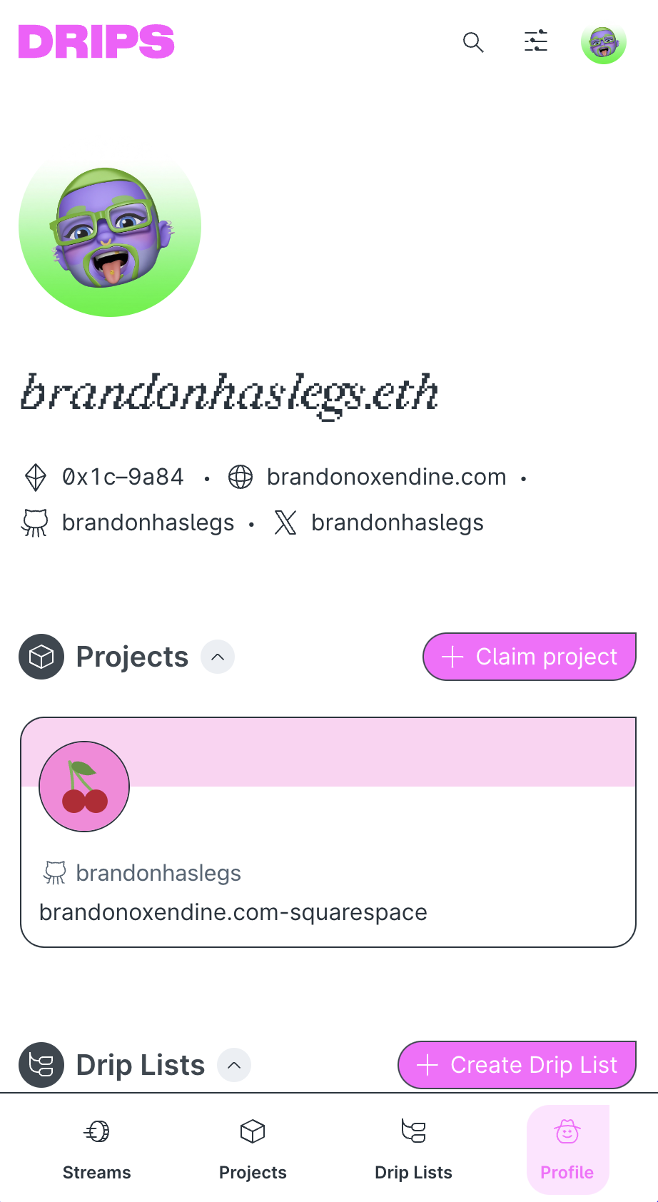 Here’s an example of a Drip List I created. Drip Lists can be fundable lists of anything with an ETH address or a GitHub repo. You can also nest Drip Lists in other Drip Lists. Composability! Imagine the possibilities!