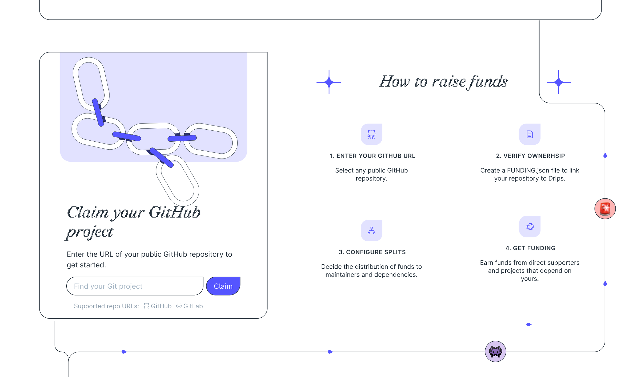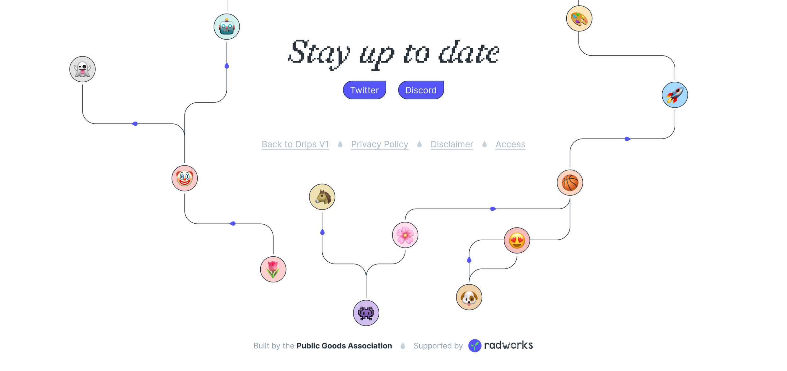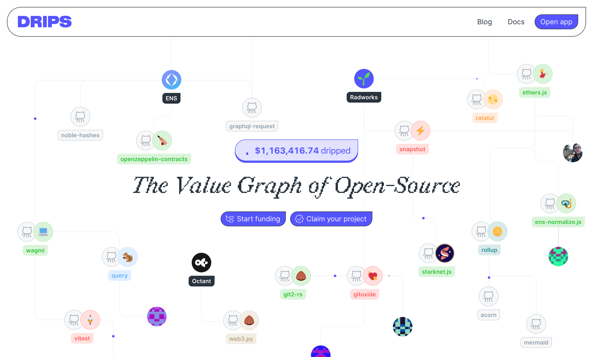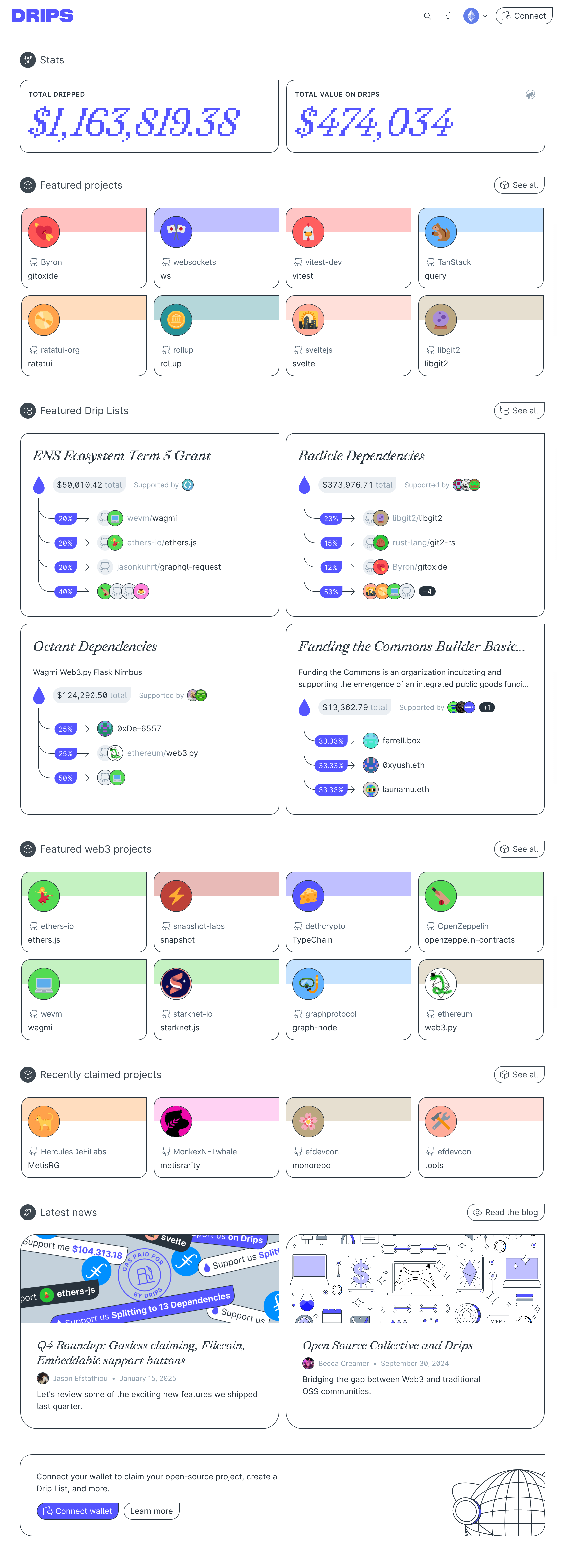 And of course, the Drips network funding illustration continues to the end of the footer.