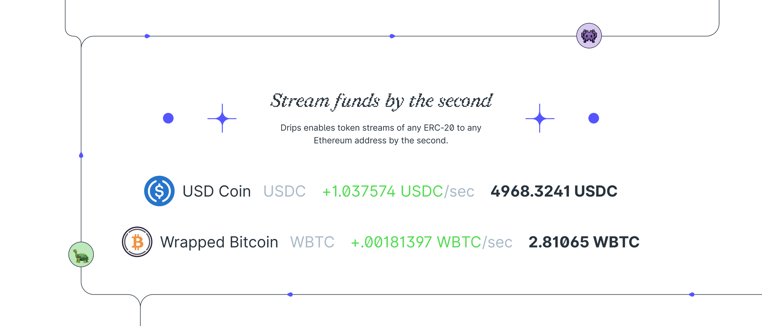 One of the major innovations of Drips is the idea of streaming money. Any money streamed on Drips is streamed in real time.