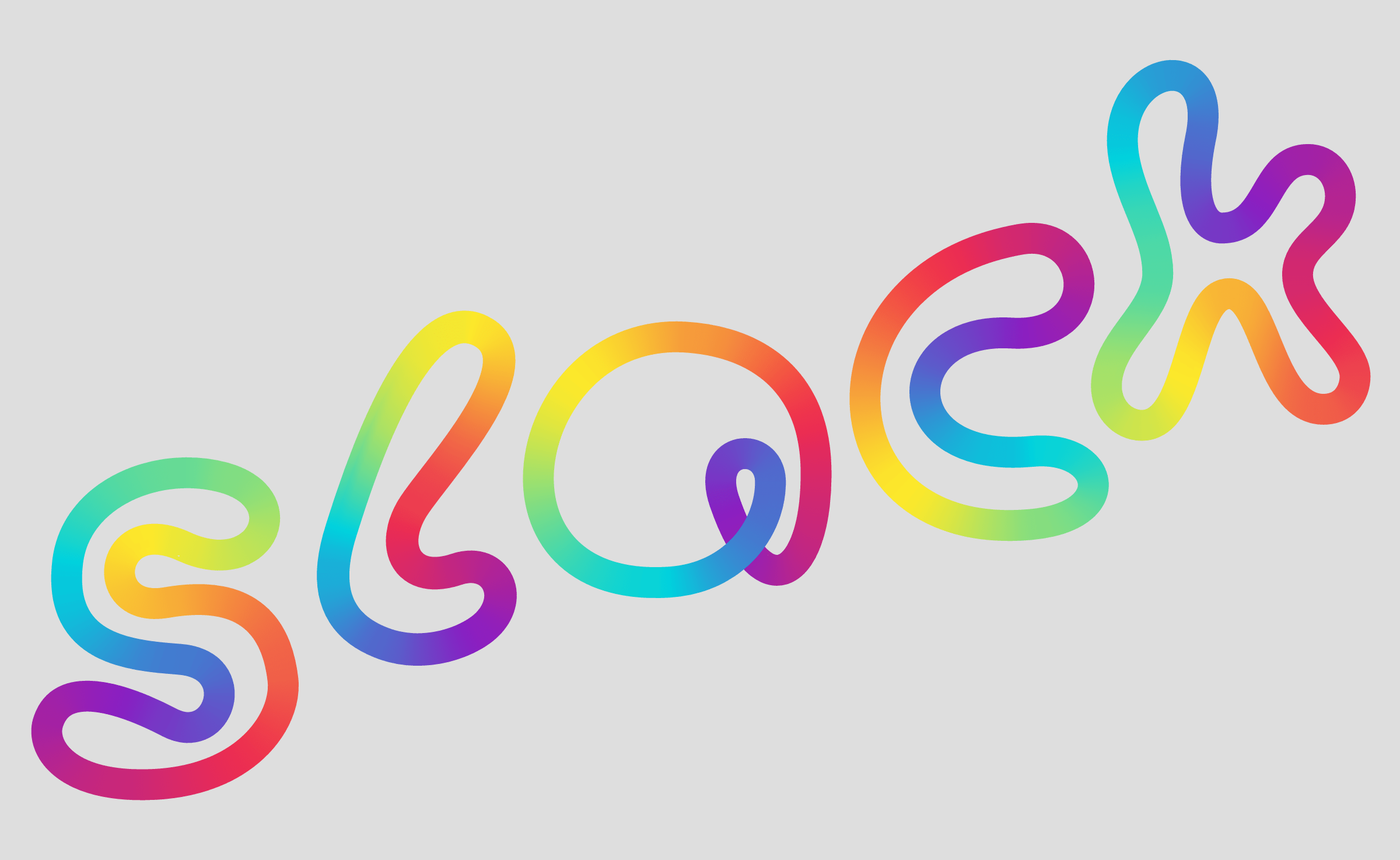 The stretchy rainbow-colored band represented working on a team together in perfect cohesion. The logo could be seen in any combination of stretchiness, just like Slack can be used in any combination of organizational structures.