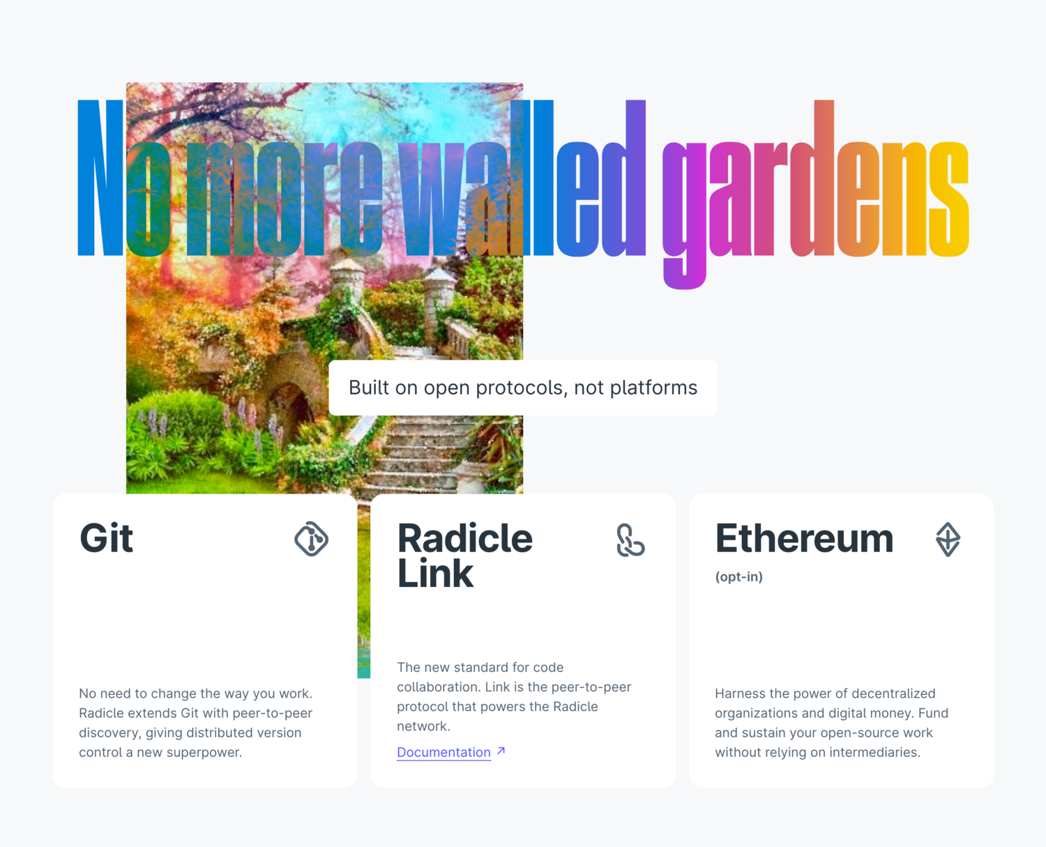 While doing branding is honestly all just fun and games, we had a complicated p2p code collaboration ecosystem to explain. 👎 Boring right? No! The site then extended to explain the full ecosystem of the tech behind Radicle.
